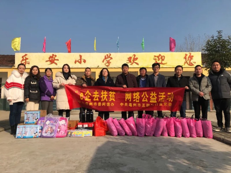 12月4日,由亳州市委網(wǎng)信辦、亳州市互聯(lián)網(wǎng)行業(yè)黨委組織開展的“e企去扶貧”網(wǎng)絡(luò)公益活動(dòng),走進(jìn)利辛縣鞏店鎮(zhèn)樂安小學(xué)。